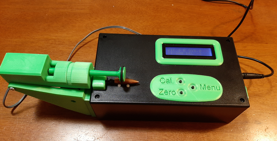 Be aware that what we’re measuring is so tiny that temperature plays a huge part in what is measured. Even the projectile heating up from handling can cause the copper to expand and alter its displayed measurement slightly.