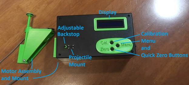 When calibration is complete you can turn the motor on and commence measurement of the projectile.