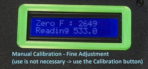 NOTE: Keep an eye on the Reading (R) because it will drift as the unit warms up and if it drifts more than 100 from the 512 mid-point of the sensor then another calibration will be required. Calibration can be pressed at any time in order to counter temperature drift and if the device determines that a full calibration is not necessary then it will simply perform a re-zero.